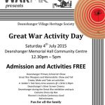 The DVHS project finale Great War Activity Day, held July 2015, displayed our findings in an exhibition alongside running a host of activities. Aimed at children and families, it included making poppies, constructing trench periscopes and handling authentic period artefacts (including a Vickers Machine Gun) were just a few activities amongst many others and of course the Primary School art project outputs were once again available to view.