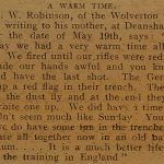 Heavy losses were inflicted on the British Army and Lord Kitchener, Secretary of State for War, initiated a recruiting campaign for volunteers as he didn’t believe “the war would be over by Christmas”. Men from the village joined the large queues reported outside recruiting offices and Regiments sent recruiting officers to attend local fetes, fairs and agricultural shows around the country. The campaign raised over one million volunteers who became known as Kitchener’s Army – many destined to fight at the Battle(s) of the Somme during 1915.