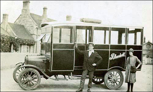 In 1925, T. Wesley commenced commercial operations as Bluebell Coaches in premises on the High Street (now occupied by Gardner & White) with a Ford Model T bus, – shown above outside Olney Midland Road Station in 1928